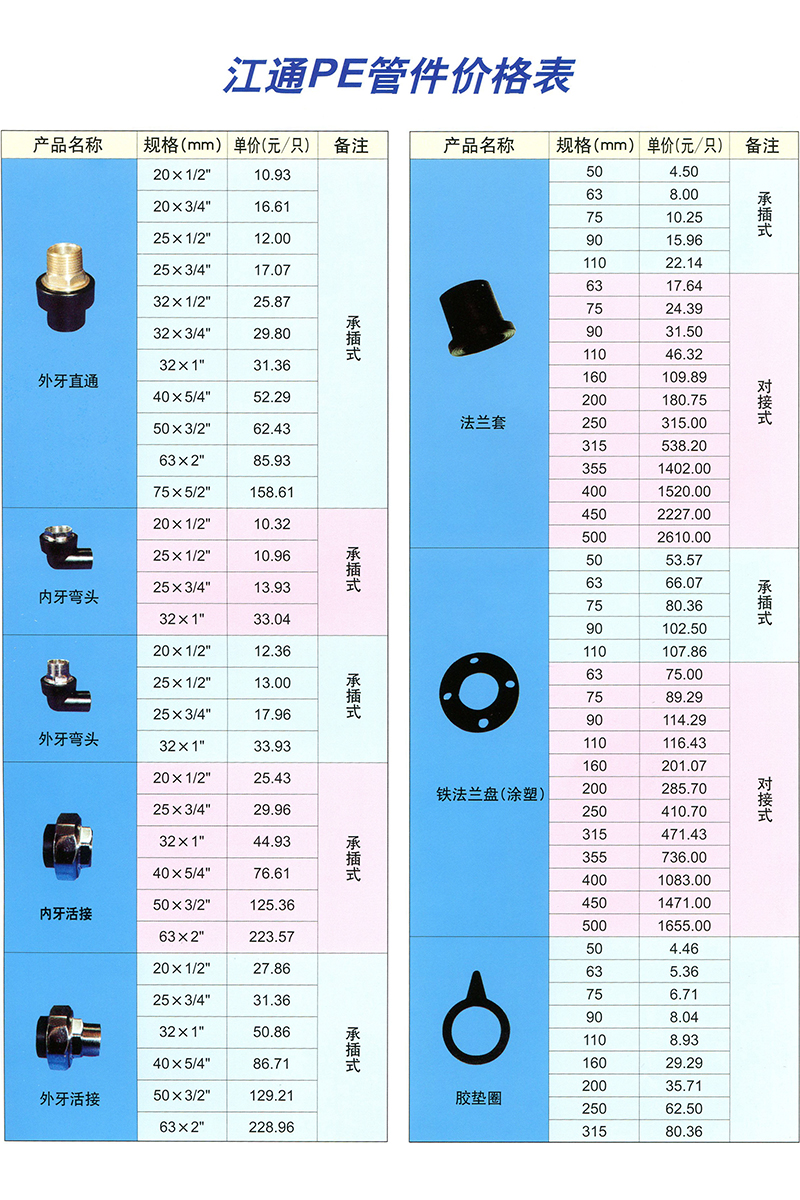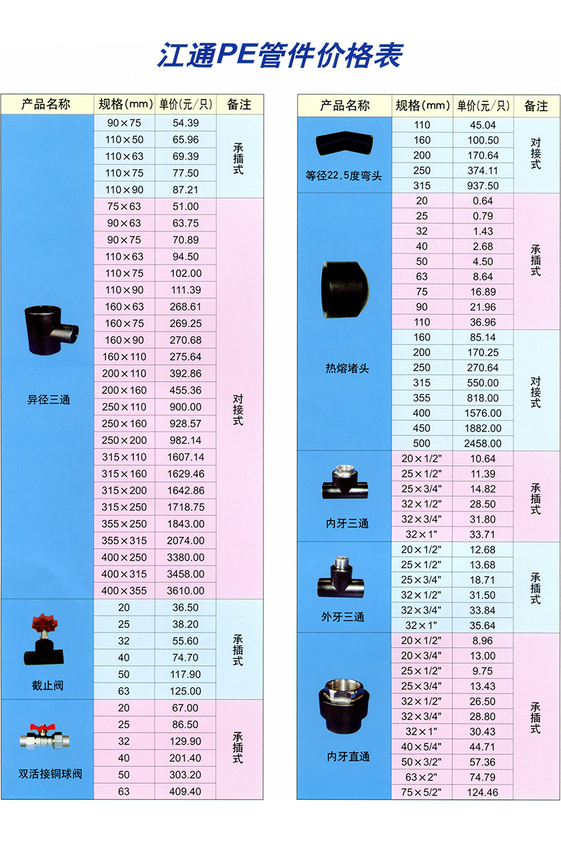 江通PE管件價(jià)格表 |